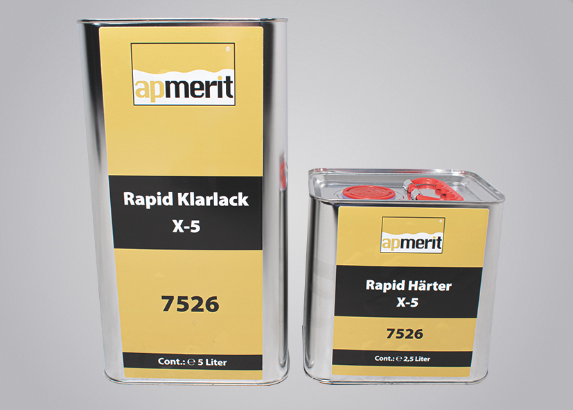 The VOC compliant product 7526 X-5 is a high solids 2K high solid clearcoat for particularly glossy surfaces with color depth. Due to the unique flow properties, the clearcoat can be applied on vertical surfaces without runners (or run-off). Suitable for small and large paint jobs on vehicles, etc. High weather and scratch resistance. is characterized by very fast curing. After only 5 minutes drying time at 60.°C and subsequent cooling, the paint can already be polished or mounted.